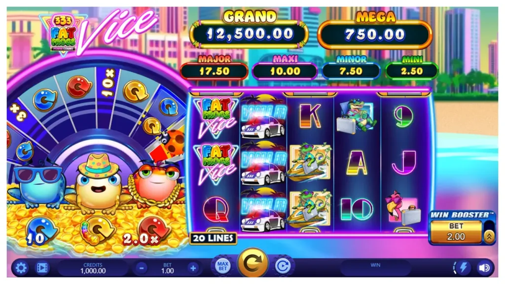 333 Fat Frogs VICE POWER COMBO™ thrives on layered features and wheel volatility. Therefore, players seeking stacked bonuses and jackpot potential will find this slot especially engaging.