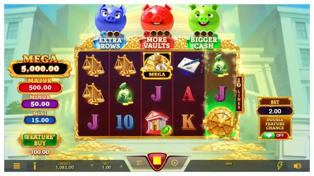 The combination of Extra Rows, More Vaults, and Bigger Cash upgrades ensures that no two Free Spins rounds feel identical. Collect symbols gather Cash and Jackpot values, while the Accumulation Trail multiplies future collections. Because jackpots scale with bet changes, volatility adjusts naturally depending on stake selection.